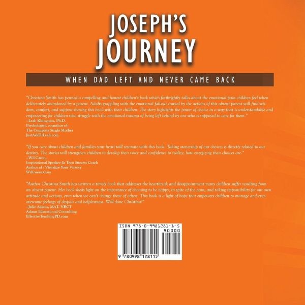 As a mother, how do you explain an absentee father to your child without blame, anger or resentment? Empower them! Seven-year-old Joseph shares his story about when he first learns about the POWER of choice he possesses after his father leaves and doesn't come back. His mother teaches him the difference between his father's choices and his own. Do Joseph and Mom become angry with Joseph's father? Well, a belief is just a thought you keep thinking over and over...find out what happens on Joseph's Journey! Joseph's Journey, is the proud recipient of the following awards and honors: The BookDesigner.Com award for Cover Design-Non Fiction The Royal Dragonfly award - 1st place for Non Fiction 5 Star review by from Readers' Favorite
