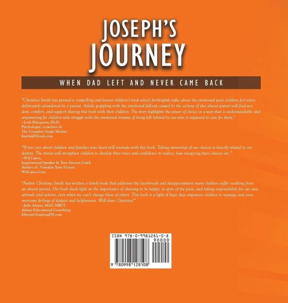 As a mother, how do you explain an absentee father to your child without blame, anger or resentment? Empower them! Seven-year-old Joseph shares his story about when he first learns about the POWER of choice he possesses after his father leaves and doesn't come back. His mother teaches him the difference between his father's choices and his own. Do Joseph and Mom become angry with Joseph's father? Well, a belief is just a thought you keep thinking over and over...find out what happens on Joseph's Journey! Joseph's Journey, is the proud recipient of the following awards and honors: The BookDesigner.Com award for Cover Design-Non Fiction The Royal Dragonfly award - 1st place for Non Fiction 5 Star review by from Readers' Favorite