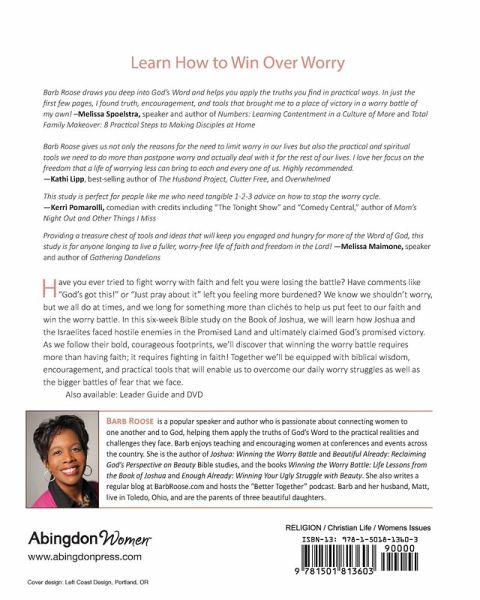 Have you ever tried to fight worry with faith and felt you were losing the battle? Have comments like "God's got this!" or "Just pray about it" only left you feeling more burdened? We know we shouldn't worry, but the reality is that we all do at times. Whether it's personal worries about loved ones and daily circumstances or broader concerns about what's happening in the world, we long for something more than platitudes that will help us put real feet to our faith and win the worry battle. In this six-week Bible study on the Book of Joshua, we will join God's people as they arrive on the edge of the promised land only to find themselves in hostile territory, faced with fear and uncertainty. As we dig into the story of how Joshua and the Israelites claimed God's promised victory, we'll discover that winning the worry battle requires more than having faith; it requires learning to fight in faith! Following their bold, courageous footprints, we'll learn how to fight in faith as we internalize God's promises, draw strength from God's faithfulness, act in obedience to God's commands, and believe what our limitless God can do. Through in-depth study of how God gave the Israelites victory over their enemies and generously blessed them, too, we'll be equipped with biblical wisdom, encouragement, and practical tools that will enable us to overcome our daily worry struggles as well as the bigger battles of fear that we face. The participant workbook includes 5 lessons for each week with space for recording reflections and answers. Other available components, each available separately, include a Leader Guide and DVD with six 20-25 minute sessions (with closed captioning).