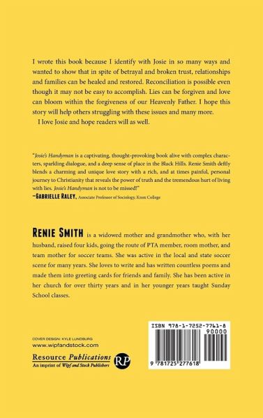 I wrote this book because I identify with Josie in so many ways and wanted to show that in spite of betrayal and broken trust, relationships and families can be healed and restored. Reconciliation is possible even though it may not be easy to accomplish. Lies can be forgiven and love can bloom within the forgiveness of our Heavenly Father. I hope this story will help others struggling with these issues and many more. I love Josie and hope readers will as well.