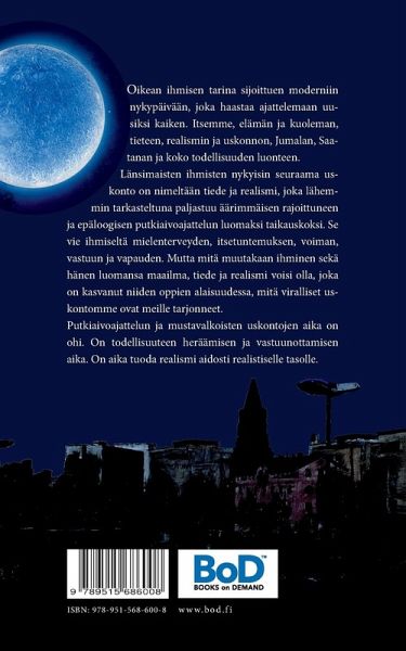 Oikean ihmisen tarina sijoittuen moderniin nykypäivään, joka haastaa ajattelemaan uusiksi kaiken. Itsemme, elämän ja kuoleman, tieteen, realismin ja uskonnon, Jumalan, Saatanan ja koko todellisuuden luonteen. Länsimaisten ihmisten nykyisin seuraama uskonto on nimeltään tiede ja realismi, joka lähemmin tarkasteltuna paljastuu äärimmäisen rajoittuneen ja epäloogisen putkiaivoajattelun luomaksi taikauskoksi. Se vie ihmiseltä mielenterveyden, itsetuntemuksen, voiman, vastuun ja vapauden. Mutta mitä muutakaan ihminen sekä hänen luomansa maailma, tiede ja realismi voisi olla, joka on kasvanut niiden…mehr