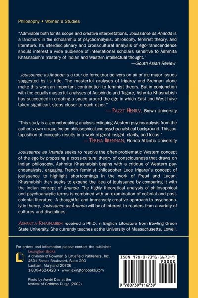 Jouissance as Ananda is a tour de force that delivers on all of the major issues suggested by its title. The masterful analyses of Irigaray and Brennan alone make this work an important contribution to feminist theory. But in conjunction with the equally masterful analyses of Aurobindo and Tagore, Ashmita Khasnabish has succeeded in creating a space around the ego in which East and West have taken significant steps closer to each other. -- Paget Henry, Brown University Admirable both for its scope and creative interpretations, Jouissance As Ananda is a landmark in the scholarship of psychoanalysis, philosophy, feminist theory, and literature. Its interdisciplinary and cross-cultural analysis of ego-transcendence should interest a wide audience of international scholars sensitive to Ashmita Khasnabish's mastery of Indian and Western intellectual thought. South Asian Review This study is a groundbreaking analysis critiquing Western psychoanalysis from the author's own unique Indian philosophical and psychoanalytical background. This juxtaposition of concepts results in a work of great insight, clarity, and focus. -- Teresa Brennan, Florida Atlantic University