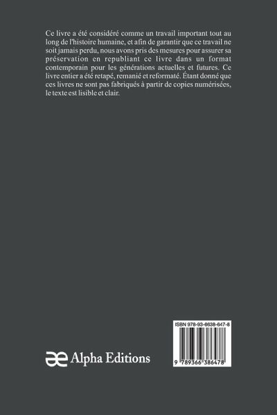 Journal d'un voyageur pendant la guerre"", constitue un phare dans le monde du livre, comblant le fossé entre le passé et le présent. Autrefois considéré parmi les livres anciens, cet ouvrage classique, comme tant de livres anciens et oubliés, a façonné notre compréhension de la culture et de l'histoire. exemple remarquable de livres d'histoire qui ont influencé des générations, et maintenant, grâce au dévouement d'Alpha Editions, votre éditeur de livres de confiance, il renaît dans un format frais et élégant. Nous avons soigneusement retapé, remanié et amélioré ce livre pour qu'il soit bien plus qu'un simple titre à lire. Vous pouvez désormais profiter de pages claires et faciles à lire, sans numérisation floue ni texte décoloré. En choisissant cette édition, vous investissez dans plus qu'un livre : vous sauvegardez un héritage. Votre soutien maintient en vie un morceau remarquable du patrimoine humain, garantissant que ses leçons et ses inspirations continuent de résonner dans le futur.