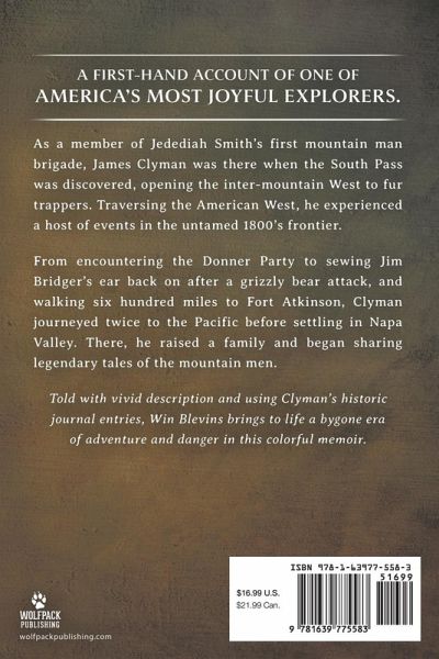A first-hand account of one of America's most joyful explorers. As a member of Jedediah Smith's first mountain man brigade, James Clyman was there when the South Pass was discovered, opening the inter-mountain West to fur trappers. Traversing the American West, he experienced a host of events in the untamed 1800's frontier. From encountering the Donner Party to sewing Jim Bridger's ear back on after a grizzly bear attack, and walking six hundred miles to Fort Atkinson, Clyman journeyed twice to the Pacific before settling in Napa Valley. There, he raised a family and began sharing legendary tales of the mountain men. Told with vivid description and using Clyman's historic journal entries, Win Blevins brings to life a bygone era of adventure and danger in this colorful memoir.
