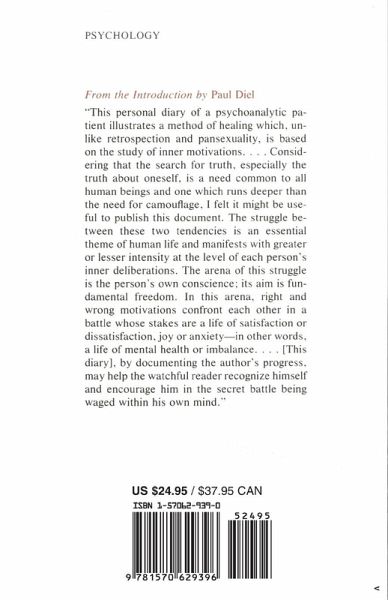 From the introduction by Paul Diel: "This personal diary of a psychoanalytic patient illustrates a method of healing which, unlike retrospection and pansexuality, is based on the study of inner motivations... Considering that the search for truth, especially the truth about oneself, is a need common to all human beings and one which runs deeper than the need for camouflage, I felt it might be useful to publish this document. This diary, but documenting the author's progress, may help the watchful reader recognize himself and encourage him in the secret battle being waged within his own mind."