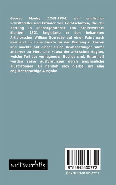 George Manby (1765-1854) war englischer Schriftsteller und Erfinder von Gerätschaften, die der Rettung in Seenotgeratener von Schiffswracks dienten. 1821 begleitete er den bekannten Artisforscher William Scoresby auf einer Fahrt nach Grönland um neue Geräte für den Walfang zu testen und machte auf dieser Reise Beobachtungen unter anderem zu Flora und Fauna der arktischen Region, welche Teil des vorliegenden Buches sind. Untermalt werden seine Ausführungen durch anschauliche Illustrationen. Es handelt sich hierbei um eine englischsprachige Ausgabe.
