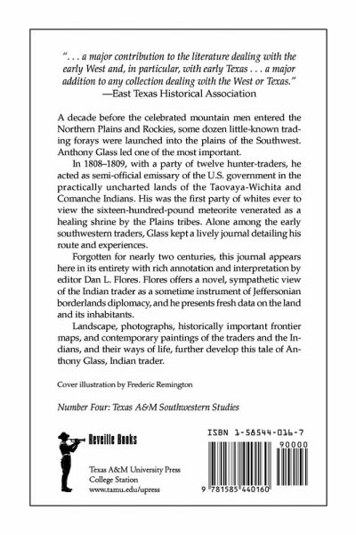 A decade before the celebrated mountain men entered the Northern Plains and Rockies, some dozen little-known trading forays were launched into the plains of the Southwest. Anthony Glass led one of the most important. In 1808-1809, with a party of twelve hunter-traders, he acted as semi-official emissary of the U.S. government in the practically uncharted lands of the Taovaya-Wichita and Comanche Indians. His was the first party of whites ever to view the sixteen-hundred-pound meteorite venerated as a healing shrine by the Plains tribes. Alone among the early southwestern traders, Glass kept a lively journal detailing his route and experiences. Forgotten for nearly two centuries, this journal appears here in its entirety with rich annotation and interpretation by editor Dan L. Flores. Flores offers a novel, sympathetic view of the Indian trader as a sometime instrument of Jeffersonian borderlands diplomacy, and he presents fresh data on the land and its inhabitants. Landscape, photographs, historically important frontier maps, and contemporary paintings of the traders and the Indians, and their ways of life, further develop this tale of Anthony Glass, Indian trader.