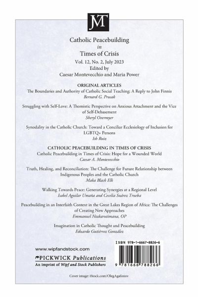ORIGINAL ARTICLES The Boundaries and Authority of Catholic Social Teaching: A Reply to John Finnis Bernard G. Prusak Struggling with Self-Love: A Thomistic Perspective on Anxious Attachment and the Vice of Self-Debasement Sheryl Overmyer Synodality in the Catholic Church: Toward a Conciliar Ecclesiology of Inclusion for LGBTQ+ Persons Ish Ruiz CATHOLIC PEACEBUILDING IN TIMES OF CRISIS Catholic Peacebuilding in Times of Crisis: Hope for a Wounded World Caesar A. Montevecchio Truth, Healing, and Reconciliation: The Challenge for Future Relationship between Indigenous Peoples and the Catholic Church Maka Black Elk Walking Towards Peace: Generating Synergies at a Regional Level Isabel Aguilar Umana and Cecelia Suarez Trueba Peacebuilding in an Interfaith Context in the Great Lakes Region of Africa: The Challenges of Creating New Approaches Emmanuel Ntakarutimana, OP Imagination in Catholic Thought and Peacebuilding Eduardo Gutierrez Gonzalez BOOK REVIEWS Gary Chartier, Understanding Friendship: On the Moral, Political, and Spiritual Meaning of Love Nickolas L. Becker, OSB David C. Cramer and Myles Werntz, A Field Guide to Christian Nonviolence: Key Thinkers, Activists, and Movements for the Gospel of Peace David Kwon David DeCosse, Created Freedom under the Sign of the Cross: A Catholic Public Theology for the United States Matthew A. Shadle Christine Firer Hinze, Radical Sufficiency: Work, Livelihood, and a US Catholic Economic Ethic Mary M. Doyle Roche Kate Jackson-Meyer, Tragic Dilemmas in Christian Ethics Thomas Ryan Bradford E. Hinze, Confronting a Church in Controversy Federico Cinocca Richard Horsley, You Shall Not Bow Down and Serve Them: The Political Economic Projects of Jesus and Paul Najeeb T. Haddad Marc A. Pugliese and John Becker, Process Thought and Roman Catholicism: Challenges and Promises Simeiqi He