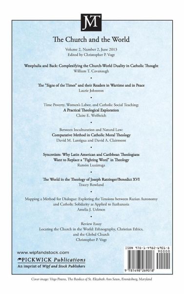 Description: The Church and the World, Vol. 2, no. 2 June 2013 The JMT focuses on Catholic moral theology. It is concerned with contemporary issues as well as our deeply rooted tradition of inquiry about the moral life. JMT's mission is to publish scholarly articles in the field of moral theology, as well as theological treatments of related topics in philosophy, economics, political philosophy, and psychology. The JMT is sponsored by the Fr. James M. Forker Professorship of Catholic Social Teaching and the College of Liberal Arts at Mount St. Mary's University.