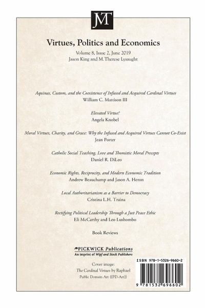 Aquinas, Custom, and the Coexistence of Infused and Acquired Cardinal Virtues William C. Mattison III Elevated Virtue? Angela Knobel Moral Virtues, Charity, and Grace: Why the Infused and Acquired Virtues Cannot Co-Exist Jean Porter Catholic Social Teaching, Love and Thomistic Moral Precepts Daniel R. DiLeo Economic Rights, Reciprocity, and Modern Economic Tradition Andrew Beauchamp and Jason A. Heron Local Authoritarianism as a Barrier to Democracy Cristina L.H. Traina Rectifying Political Leadership Through a Just Peace Ethic Eli McCarthy and Leo Lushombo Book Reviews