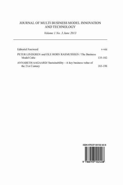 Aim: Provides an in-depth and holistic view of Multi Business Model and technology Innovation from practical to theoretical aspects covering topics that are equally valuable for practitioners as well as academia - also those new in the field. Scope: The journal covers Multi Business Model and technology innovation issues and solutions thereof. As Business has moved towards a world of multi business models, issues in modeling business and business models will be published. The publication takes a holistic, strategical, network based and global view to the Multi business approach. Some example…mehr