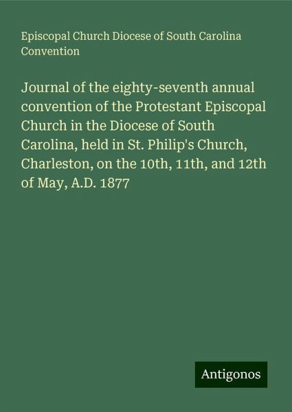 Journal of the eighty-seventh annual convention of the Protestant Episcopal Church in the Diocese of South Carolina, held in St. Philip's Church, Charleston, on the 10th, 11th, and 12th of May, A.D. 1877 - Convention, Episcopal Church Diocese of South Carolina