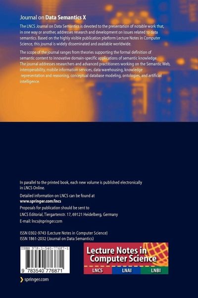 - Web semantics and semi-structured data - Semantic caching - Data warehousing and semantic data mining - Spatial, temporal, multimedia and multimodal semantics - Semantics in data visualization - Semantic services for mobile users - Supporting tools - Applications of semantic-driven approaches These topics are to be understood as specifically related to semantic issues. Contributions submitted to the journal and dealing with semantics of data will be considered even if they are not from the topics in the list. While the physical appearance of the journal issues is like the books from the we- known Springer LNCS series, the mode of operation is that of a journal. Contributions can be freely submitted by authors and are reviewed by the Editorial Board. Contributions may also be invited, and nevertheless carefully reviewed, as in the case for issues that contain extended versions of best papers from major conferences addressing data semantics issues. Special issues, focusing on a specific topic, are coordinated by guest editors once the proposal for a special issue is accepted by the Editorial Board. Finally, it is also possible that a journal issue be devoted to a single text. The Editorial Board comprises an Editor-in-Chief (with overall responsibility), a Co-editor-in-Chief, and several members. The Editor-in-Chief has a four-year mandate. Members of the board have a three-year mandate. Mandates are renewable and new members may be elected anytime.