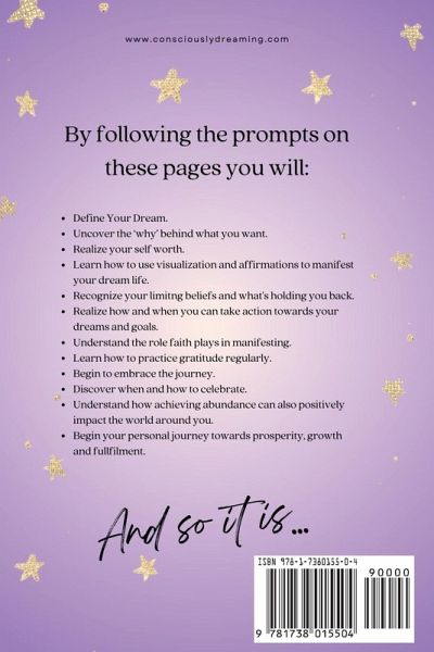 Journal Your Way To Abundance: A Workbook for Manifesting Prosperity, Growth and Fulfillment through Guided Self-Discovery and Reflective Journaling is your personal roadmap towards living the life of your dreams. This Journal consists of 184 pages in 12 unique chapters with a diverse range of prompts, quotes, exercises, and plenty of writing space. Along the journaling experience you get to explore the different aspects necessary to manifesting abundance. Each chapter is carefully crafted in chronological order to take you along the journey towards attracting abundance into your life. With each chapter introducing new prompts, exercises and activities, you are ensured a non-repetitive journaling experience the entire way through. The chapters in this journal will guide you to: Define Your Dream. Uncover the 'why' behind what you want. Realize your self worth. Learn how to use visualization and affirmations to manifest your dream life. Recognize your limitng beliefs and what's holding you back. Realize how and when you can take action towards your dreams and goals. Understand the role faith plays in manifesting. Practice gratitude regularly. Embrace every step of the journey. Discover when and how to celebrate. Understand how your personal goals can also positively impact the world around you. Begin your personal journey towards prosperity, growth and fullfilment. Journal Specs Glossy cover and color interior 6 x 9 inches in size 184 artisan created pages filled with prompts, quotes, exercises and creative writing spac This is a guided self-discovery workbook. It will require your effort, commitment and completion of the prompts & exercises in order for you to benefit from its contents. This journal is designed to help you: Deepen your awareness. Learn of the power within you. Cultivate a sense of purpose and meaning in your life. Overcome fear and self-doubt. Practice self-care and prioritize your own needs. Foster stronger relationships with the people around you. Practice mindfulness and live in the present moment. Attract a sense of abundance, fulfillment and purpose into your life. You are capable of transforming your life! You CAN do this.