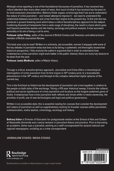 Through a critical, transdisciplinary approach, Journalism and Crime offers a chronological interrogation of crime journalism from its first origins in 16th century print, to a transatlantic phenomenon in the 19th century, and through to the complex networked digital spheres of the current day.