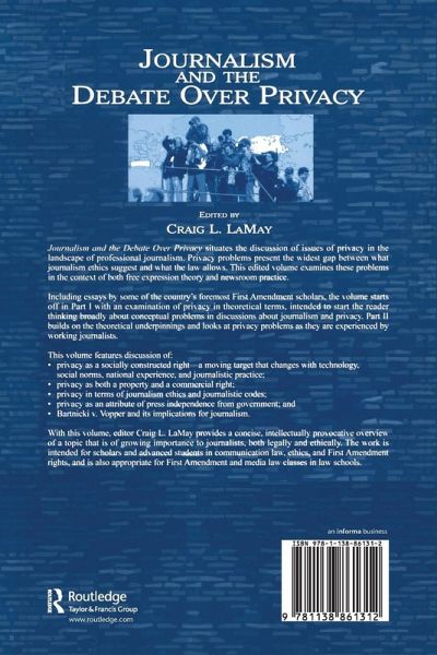 Journalism and the Debate Over Privacy situates the discussion of issues of privacy in the landscape of professional journalism. Privacy problems present the widest gap between what journalism ethics suggest and what the law allows. This edited volume examines these problems in the context of both free expression theory and newsroom practice. Including essays by some of the country's foremost First Amendment scholars, the volume starts off in Part I with an examination of privacy in theoretical terms, intended to start the reader thinking broadly about conceptual problems in discussions about journalism and privacy. Part II builds on the theoretical underpinnings and looks at privacy problems as they are experienced by working journalists. This volume features discussion of: *privacy as a socially-constructed right--a moving target that changes with technology, social norms, national experience, and journalistic practice; *privacy as both a property and a commercial right; *privacy in terms of journalism ethics and journalistic codes; *privacy as an attribute of press independence from government; and *Bartnicki v. Vopper and its implications for journalism. With this volume, editor Craig L. LaMay provides a concise, intellectually provocative overview of a topic that is of growing importance to journalists, both legally and ethically. The work is intended for scholars and advanced students in communication law, ethics, and First Amendment rights, and is also appropriate for First Amendment and media law classes in law schools.