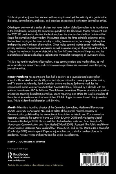 Offering an overview of a series of crises that have shaken global journalism to its foundations in the last decade, including the coronavirus pandemic, the Black Lives Matter movement, and the 2020 US presidential election, the book explores the structural and ethical problems that shape the journalism industry today. The authors discuss the three principle existential crises that continue to plague the news industry: a failing business model, technological disruption, and growing public mistrust of journalism. Other topics covered include social media ethics, privacy concerns, chequebook journalism, as well as a new analysis of journalism theory that critiques the well-worn tropes of objectivity, the Fourth Estate, freedom of the press, and the marketplace of ideas to develop a sophisticated materialist reimagining of journalism ethics.
