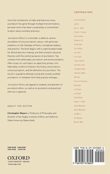 Since the introduction of radio and television news, journalism has gone through multiple transformations, but each time it has been sustained by a commitment to basic values and best practices. Journalism Ethics is a reminder, a defense and an elucidation of core journalistic values, with particular emphasis on the interplay of theory, conceptual analysis and practice. The book begins with a sophisticated model for ethical decision-making, one that connects classical theories with the central purposes of journalism. Top scholars from philosophy, journalism and communications offer essays on such topics as objectivity, privacy, confidentiality, conflict of interest, the history of journalism, online journalism, and the definition of a journalist. The result is a guide to ethically sound and socially justified journalism-in whatever form that practice emerges. Journalism Ethics will appeal to students and teachers of journalism ethics, as well as journalists and practical ethicists in general.