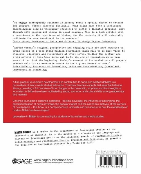 "What might have been a forbidding chronological slog is thoroughly enlivened by Conboy's thematic approach, shot through with passion and rigour in equal measure. This is a book written with a commitment to the importance of history for the present; it will undeniably cultivate the same commitment in its readers." - Chris Atton, Edinburgh Napier University "An authoritative and accessible introduction to the history of journalism. Excellent resource for undergraduates." - Philip Dixon, Southampton Solent University A firm grasp of journalism's development and contribution to social and political debates is a cornerstone of any media studies education. This book teaches students that essential historical literacy, providing a full overview of how changes in the ownership, emphasis and technologies of journalism in Britain have been motivated by social, economic and cultural shifts among readerships and markets. Covering journalism's enduring questions - political coverage, the influence of advertising, the sensationalization of news coverage, the popular market and the economic motives of the owners of newspapers - this book is a comprehensive, articulate and rich account of how the mediascape of modern Britain has been shaped.