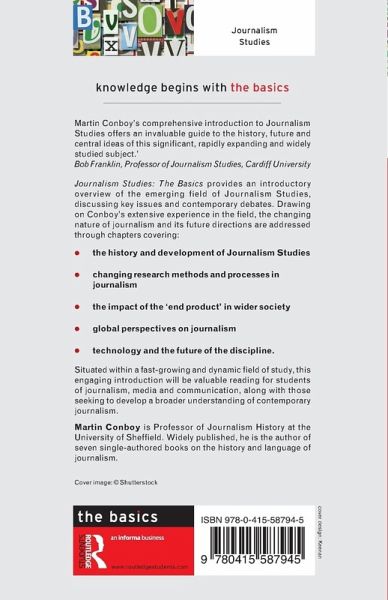 Journalism Studies: The Basics provides an introductory overview of the emerging field of Journalism Studies, discussing key issues and contemporary debates. Drawing on Conboyâ s extensive experience in the field, the changing nature of journalism and its future directions are addressed.