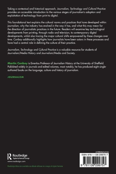 Journalism, Technology and Cultural Practice is a valuable resource for students of Journalism/Media History and Journalism/Media and Society.