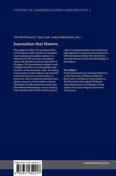 This collective effort of Central and Eastern European (CEE) scholars investigates and compares journalism cultures in a selection of CEE countries. Simultaneously with dramatic societal and political changes, CEE journalisms undergo a technological revolution and the global repercussions of the economic crisis. According to the authors of this volume, the national cultural factors and traditions play an important role in professionalization and democratization of journalism cultures. The book critically examines some of the identified developments, such as shifting roles and functions of the media and journalists or interpretations of occupational self-regulation as genuine phenomena of CEE journalisms rather than deviations from the Western professional ideology of journalism.