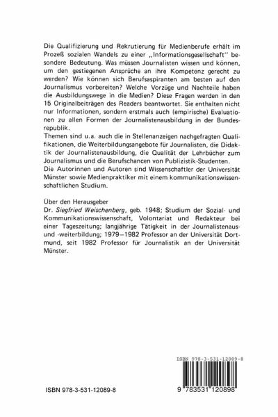 Die Qualifizierung und Rekrutierung für Medienberufe enthält im Prozeß sozialen Wandels zu einer "Informationsgesellschaft" besondere Bedeutung. Was müssen Journalisten wissen und können, um den gestiegenen Ansprüchen an ihre Kompetenz gerecht zu werden? Wie können sich Berufsaspiranten am besten auf den Journalismus vorbereiten? Welche Vorzüge und Nachteile haben die Ausbildungswege in die Medien? Diese Fragen werden in den 15 Originalbeiträgen des Readers beantwortet. Sie enthalten nicht nur Informationen, sondern erstmals auch (empirische) Evaluationen zu allen Formen der Journalistenausbildung in der Bundesrepublik. Themen sind u.a. die in Stellenanzeigen nachgefragten Qualifikationen, die Weiterbildungsangebote für Journalisten, die Didatik der Journalistenausbildung, die Qualität der Lehrbücher zum Journalismus und die Berufschancen von Publizistik-Studenten."(...) Dem vorliegenden Reader ist das Erreichen seiner Zielsetzung voll zu bescheinigen. Er leistet - und das unterscheidet ihn durchaus von anderen einschlägigen Publikationen - eine weitreichende Problematisierung sowie vor allem empirisch gestützte Evaluation der Qualifizierung für die Medien und arbeitet damit einen bedeutenden Defizitbereich der Forschung auf. Trotz der Vielfalt der behandelten Einzelthemen bleibt der Problemzugriff insgesamt doch kohärent, was durch häufige Querverweise unterstützt wird. Berufsaspiranten, aber auch die Ausbilder selbst sollten nicht von der Lektüre dieses wichtigen Beitrags absehen."Medienwissenschaft 1/91"(...) Das Buch empfiehlt sich nicht nur für Berufsaspiranten, die sich über die diversen Ausbildungswege ein Bild verschaffen wollen, sondern auch für Journalisten, die nach Ergänzungen suchen und die Anregungen zur Reflexion über die Bedingungen ihres Berufes erwarten."Medium 1/92