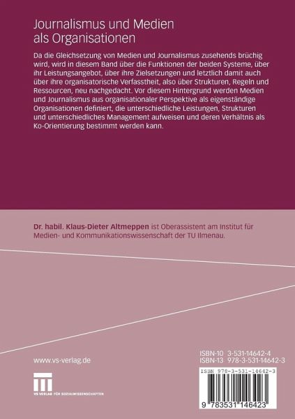 Da die Gleichsetzung von Medien und Journalismus zusehends brüchig wird, wird in diesem Band über die Funktionen der beiden Systeme, über ihr Leistungsangebot, über ihre Zielsetzungen und letztlich damit auch über ihre organisatorischeVerfasstheit, also über Strukturen, Regeln und Ressourcen neu nachgedacht. Vor diesem Hintergrund werden Medien und Journalismus aus organisationaler Perspektive als eigenständige Organisationen definiert, die unterschiedliche Leistungen, Strukturen und Management aufweisen und deren Verhältnis als Ko-Orientierung bestimmt werden kann.