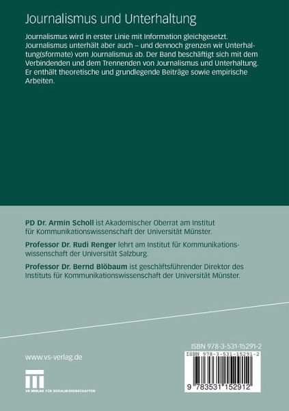 und Einführung in den Band.- und Einführung in den Band.- Theoretische Grundlagen.- Information und/oder Unterhaltung?.- Unterhaltung.- Nie fand ich einen geselligeren Gesellschafter als die Unterhaltung.- Theoretische Anwendungen.- Unterhaltung als Journalismus - Journalismus als Unterhaltung.- Argwöhnisch beÄugt.- Genial daneben.- Differenzierung und Distinktion.- Das Hofnarren-Komplott.- Empirische Umsetzungen.- "Unterhaltungspublizistik".- Politik zum Lachen.- Prominenz als Medieninhalt.