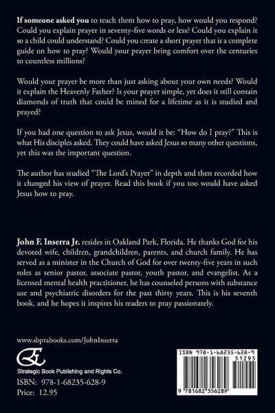 If someone asked you to teach them how to pray, how would you respond? Could you explain prayer in seventy-five words or less? Could you explain it so a child could understand? Could you create a short prayer that is a complete guide on how to pray? Would your prayer bring comfort over the centuries to countless millions?Would your prayer be more than just asking about your own needs? Would it explain the Heavenly Father? Is your prayer simple, yet does it still contain diamonds of truth that could be mined for a lifetime as it is studied and prayed?If you had one question to ask Jesus, would it be: "How do I pray?" This is what His disciples asked. They could have asked Jesus so many other questions, yet this was the important question.The author has studied "The Lord's Prayer" in depth and then recorded how it changed his view of prayer. Read this book if you too would have asked Jesus how to pray.(About the Author) John F. Inserra Jr. resides in Oakland Park, Florida. He thanks God for his devoted wife, children, grandchildren, parents, and church family. He has served as a minister in the Church of God for over twenty-five years in such roles as senior pastor, associate pastor, youth pastor, and evangelist. As a licensed mental health practitioner, he has counseled persons with substance use and psychiatric disorders for the past thirty years. This is his seventh book, and he hopes it inspires his readers to pray passionately.