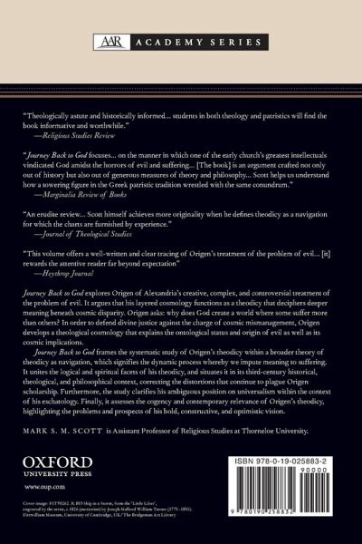 Journey Back to God explores Origen of Alexandria's creative, complex, and controversial treatment of the problem of evil. It argues that his layered cosmology functions as a theodicy that deciphers deeper meaning beneath cosmic disparity. Origen asks: why does God create a world where some suffer more than others? On the surface, the unfair arrangement of the world defies theological coherence. In order to defend divine justice against the charge of cosmic mismanagement, Origen develops a theological cosmology that explains the ontological status and origin of evil as well as its cosmic implications. Origen's theodicy hinges on the journey of the soul back to God. Its themes correlate with the soul's creation, fall and descent into materiality, gradual purification, and eventual divinization. The world, for Origen, functions as a school and hospital for the soul where it undergoes the necessary education and purgation. Origen carefully calibrates his cosmology and theology. He portrays God as a compassionate and judicious teacher, physician, and father who employs suffering for our amelioration.