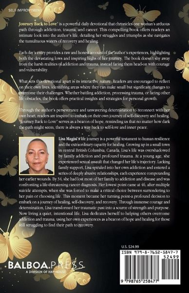 Journey Back to Love" is a powerful daily devotional that chronicles one woman's arduous path through addiction, trauma, and cancer. This compelling book offers readers an intimate look into the author's life, detailing her struggles and triumphs as she navigates the tumultuous waters of recovery and healing. Each day's entry provides a raw and honest account of the author's experiences, highlighting both the devastating lows and inspiring highs of her journey. The book doesn't shy away from the harsh realities of addiction and trauma, instead facing them head-on with courage and vulnerability. What sets this devotional apart is its interactive nature. Readers are encouraged to reflect on their own lives, identifying areas where they can make small but significant changes to overcome their challenges. Whether battling addiction, processing trauma, or facing other life obstacles, the book offers practical insights and strategies for personal growth. Through the author's perseverance and unwavering determination to reconnect with her own heart, readers are inspired to embark on their own journey of self-discovery and healing. "Journey Back to Love" serves as a beacon of hope, reminding us that no matter how dark the path might seem, there is always a way back to self-love and inner peace.