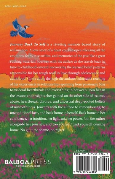 Journey Back To Self is a riveting memoir based story of reclamation. A love story of a heart cracked open releasing all the emotions, fears, insecurities, and memories of the past like a great rushing waterfall. Journey with the author as she travels back in time to childhood onward uncovering the learned belief patterns responsible for her rough road in love through adolescence and adulthood. Come along through the authors vulnerable retelling of her experiences in relationships spanning from passionate bliss to visceral heartbreak and everything in between. Join her in the lessons and insights she's gained on the other side of trauma, abuse, heartbreak, divorce, and ancestral deep-rooted beliefs of unworthiness. Journey with the author to remembering, to unconditional love, and back home to herself. Back home to her confidence, her intuition, her light, and her power. Join the author alongside her journey, and too you will find yourself coming home. No guilt, no shame, no regret.