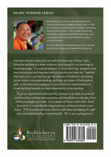 The Heart Wisdom series aims to make the teachings of Ringu Tulku Rinpoche available to a wider audience, by bringing his oral teachings to the written page. This volume presents 37 short teachings, designed to be read individually and integrated with our practice and daily life. Together they take us on a journey through the vehicles of Buddhism, elucidating some common misunderstandings and basic principles of the Buddhist path, all the while encouraging us to move from our head (intellectual understanding) towards our heart (experiential understanding). 'To get an experiential understanding you have to go deep into yourself and learn how to bring your awareness and mindfulness to the place from which you deeply experience. It is a matter of 'heart' rather than 'head'. Sometimes it is said that the longest journey is from your head to your heart. Which is what we mean when we talk about developing the right view and understanding it experientially. This is an on going process.'