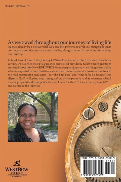 As we travel throughout our journey of living life we may already be a believer that God and His power is real yet still struggle at times contingent upon the terrain we are traveling along at a specific point and time along our journey. In book two of four of the Journey GPS book series, we explore that one thing is for certain, we desire to trust His guidance but we still may desire to have more questions answered about how He will PROVIDE for us along our journey when things seem unlike what we expected in our Christian walk and we find ourselves at a crossroads or fork in the road questioning once again "how did I get here" and "what should I do next" that aligns to God's will, plan, way, timing and my divine purpose so that no matter what, I may be prepared and equipped with what I need "within" to trust God, my true GPS and Continue the Journey!