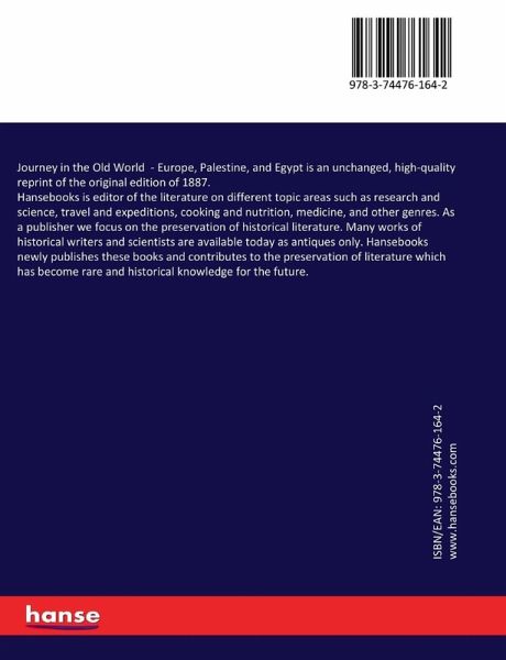 Journey in the Old World - Europe, Palestine, and Egypt is an unchanged, high-quality reprint of the original edition of 1887.