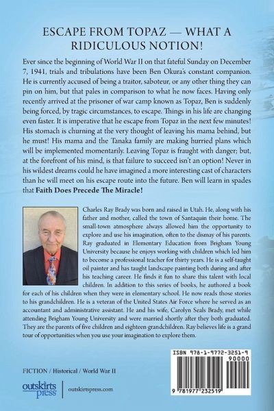 Ever since the beginning of World War II on that fateful Sunday on December 7, 1941, trials and tribulations have been Ben Okura's constant companion. He is currently accused of being a traitor, saboteur, or any other thing they can pin on him, but that pales in comparison to what he now faces. Having only recently arrived at the prisoner of war camp known as Topaz, Ben is suddenly being forced, by tragic circumstances, to escape. Things in his life are changing even faster. It is imperative that he escape from Topaz in the next few minutes! His stomach is churning at the very thought of leaving his mama behind, but he must! His mama and the Tanaka family are making hurried plans which will be implemented momentarily. Leaving Topaz is fraught with danger; but, at the forefront of his mind, is that failure to succeed isn't an option! Never in his wildest dreams could he have imagined a more interesting cast of characters than he will meet on his escape route into the future. Ben will learn in spades that Faith Does Precede The Miracle!