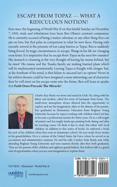 Ever since the beginning of World War II on that fateful Sunday on December 7, 1941, trials and tribulations have been Ben Okura's constant companion. He is currently accused of being a traitor, saboteur, or any other thing they can pin on him, but that pales in comparison to what he now faces. Having only recently arrived at the prisoner of war camp known as Topaz, Ben is suddenly being forced, by tragic circumstances, to escape. Things in his life are changing even faster. It is imperative that he escape from Topaz in the next few minutes! His stomach is churning at the very thought of leaving his mama behind, but he must! His mama and the Tanaka family are making hurried plans which will be implemented momentarily. Leaving Topaz is fraught with danger; but, at the forefront of his mind, is that failure to succeed isn't an option! Never in his wildest dreams could he have imagined a more interesting cast of characters than he will meet on his escape route into the future. Ben will learn in spades that Faith Does Precede The Miracle!