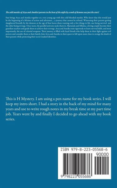 The cold murder of Arya and Annika's parents in the heat of the night by a mob of demons was just the start! Fate brings Arya and Annika together at a very young age with this cold blooded murder. Who knew that this would just be the beginning of a lifetime of action and adventure…..a journey that cannot be refused. Witnessing their parents getting slaughtered brutally by the demons at the age of four leaves them wanting only a few things in life, one being survival and the other being revenge. Once teens, the parallel universe sucks them in. Martanda and Mhalsa, a loving couple become their guardian teachers and guide them to achieve their revenge. Arya and Annika train rigorously to learn survival skills, and most importantly, the use of celestial weapons. Their journey is filled with loyal friends who help them in their fight against evil powers and consider them as their family. Join Arya and Annika in their quest to fall upon more clues to avenge the death of their parents while protecting their secret masked identities.