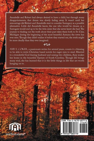 Annabelle and Robert had always desired to have a child, but through many disappointments, that dream was slowly fading away. It wasn't till her miscarriage did Robert and Annabelle start to consider Surrogacy as a possible alternative. Little did Annabelle know, the one who would be chosen as a Surrogate would end up to be the twin sister that she never knew she had. The journey to finding out the truth about their past takes them both to St. Clair, Michigan during the beginning of the most beautiful Autumn the town has ever seen. Though they didn't realize it before they started out, the truth might be more deadly than they ever imagined.