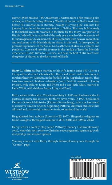 Journey of the Messiah-The Awakening is written from a first-person point of view, as if Jesus is telling His story. The life of the Son of God is told from before His incarnation in eternity, through His young life, and into His journey from the wilderness temptation to Galilee. The story holds closely to the biblical accounts recorded in the Bible for this thirty-year portion of His life. While little is recorded of the early years, much of the journey is left to our imagination. Such moments of His departure from Heaven, conception, and Awakening to His Messiahship are shared in this book.…mehr