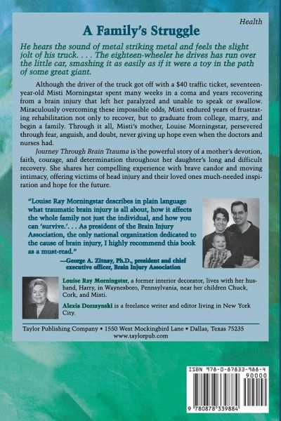 Misti Morningstar's auto accident leaves her spending weeks in a coma and years recovering from a brain injury that leaves her paralyzed and unable to speak or swallow. Journey Through Brain Trauma is the true story of Louise Morningstar's struggle to help her daughter recover from devastating brain damage.