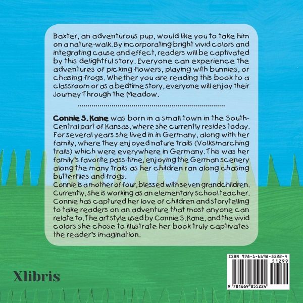 Baxter, an adventurous pup, would like you to take him on a nature-walk. By incorporating bright vivid colors and integrating cause and effect, readers will be captivated by this delightful story. Everyone can experience the adventures of picking flowers, playing with bunnies, or chasing frogs. Whether you are reading this book to a classroom or as a bedtime story, everyone will enjoy their Journey Through the Meadow.