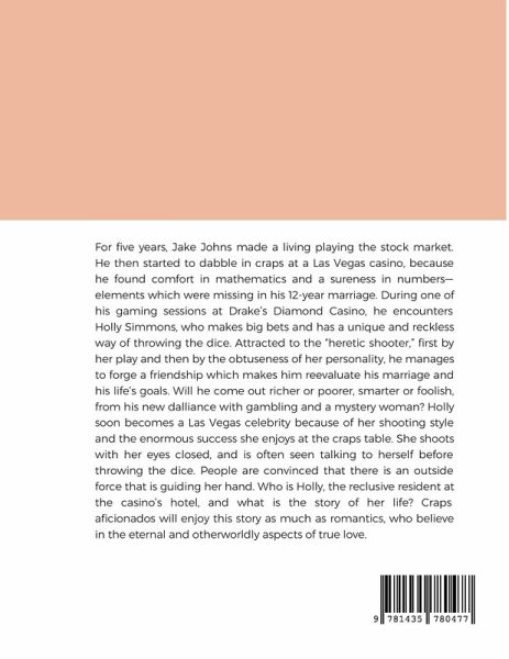 For five years, Jake Johns made a living playing the stock market. He then started to dabble in craps at a Las Vegas casino, because he found comfort in mathematics and a sureness in numbers- elements which were missing in his 12-year marriage. During one of his gaming sessions at Drake's Diamond Casino, he encounters Holly Simmons, who makes big bets and has a unique and reckless way of throwing the dice. Attracted to the "heretic shooter," first by her play and then by the obtuseness of her personality, he manages to forge a friendship which makes him reevaluate his marriage and his life's goals. Will he come out richer or poorer, smarter or foolish, from his new dalliance with gambling and a mystery woman? Holly soon becomes a Las Vegas celebrity because of her shooting style and the enormous success she enjoys at the craps table. She shoots with her eyes closed, and is often seen talking to herself before throwing the dice. People are convinced that there is an outside force that is guiding her hand. Who is Holly, the reclusive resident at the casino's hotel, and what is the story of her life? Craps aficionados will enjoy this story as much as romantics, who believe in the eternal and otherworldly aspects of true love.