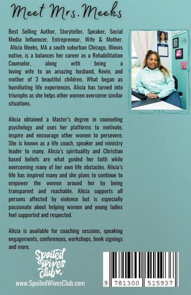 Alicia Meeks is a certified counselor and she holds an MA in psychology and earned both her BA and MA from Lewis University with distinction. Her passion is focusing on marriage, blended families, and co-parenting. She spends her time in several different professional roles. She is a Rehabilitation Counselor, Event Planner, Influencer, Co-Founder of Spoiled Wives Club, Co-Host of Family Dynamics Podcast, and now 2x Author. Her website (www.AliciaMeeks.com) will link you to her social media platforms which are all able to be located by searching "Spoiled Wives Club" on Facebook, Instagram, YouTube, and TikTok. Kevin Meeks is a Motivational Speaker, Founder of Spoiled Wives Club, Author, Illustrator, Co-Host of Family Dynamics Podcast, and Videographer. His primary focus is assisting co-parenting fathers with developing positive and meaningful relationships with their children while teaching them constructive ways to deal with high conflict alternative parents.