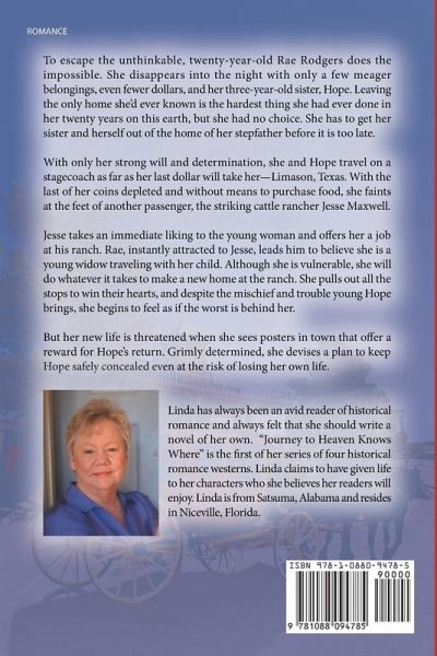 To escape the unthinkable, twenty-year old Rae Rodgers does the impossible; she disappears into the night with only a few meager belongings, even fewer dollars, and her three-year old sister, Hope. Leaving the only home she'd ever known was the hardest thing she had ever done in her twenty years, but she had no choice. She has to get her sister and herself out of the home of her stepfather before it is too late. With only her strong will and determination, she and Hope travel on a stagecoach as far as her last dollar will take her-Limason, Texas. With the last of her coins depleted and without means to purchase food, she faints at the feet of another passenger, the striking cattle rancher Jesse Maxwell. Jesse takes an immediate liking to the young woman and offers her a job at his ranch. Rae, instantly attracted to Jesse, leads him to believe she is a young widow traveling with her child. But her new life is threatened when she sees posters in town that offer a reward for Hope's return. Grimly determined, she devises a plan to keep Hope safely concealed, even at the risk of losing her own life.
