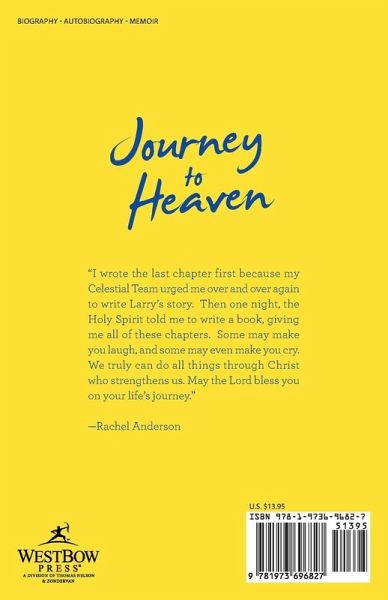 "I wrote the last chapter first because my Celestial Team urged me over and over again to write Larry's story. Then one night, the Holy Spirit told me to write a book, giving me all of these chapters. Some may make you laugh, and some may even make you cry. We truly can do all things through Christ who strengthens us. May the Lord bless you on your life's journey." -Rachel Anderson