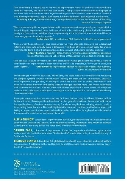 The challenges we face in education, health care, and social welfare are multifaceted, reflecting the complex systems in which we live. Out of urgency and often the best of intentions, organizations implement new policies, technologies, and other innovations to tackle these issues, and hope for the best. However, addressing these challenges requires more than heroic individuals with silver-bullet solutions. We need teams with diverse expertise that know how to learn together and use their collective knowledge to redesign our social systems for the improved well-being of our communities. Journey to Improvement serves as a road map for teams that are ready to follow a different path to better outcomes. Drawing on their decades of on-the-ground experience, the authors walk teams through the phases of an improvement journey from launching the team to trying ideas in practice to spreading those that work. This book highlights the personal, relational, and technical aspects of taking an improvement science approach and illustrates these ideas through real-world examples from across the social sector and around the world.