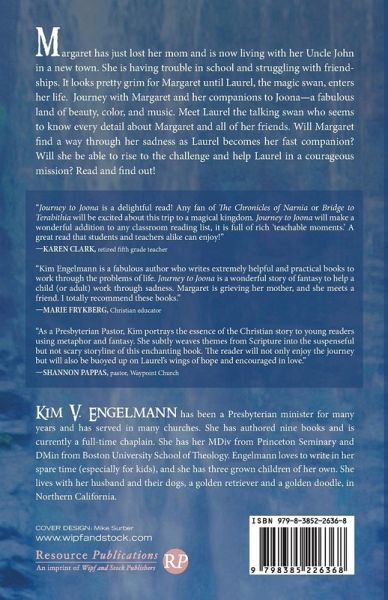Margaret has just lost her mom and is now living with her Uncle John in a new town. She is having trouble in school and struggling with friendships. It looks pretty grim for Margaret until Laurel, the magic swan, enters her life. Journey with Margaret and her companions to Joona--a fabulous land of beauty, color, and music. Meet Laurel the talking swan who seems to know every detail about Margaret and all of her friends. Will Margaret find a way through her sadness as Laurel becomes her fast companion? Will she be able to rise to the challenge and help Laurel in a courageous mission? Read and find out!