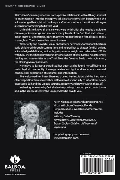 Klein's Inner Shaman guided her from a passive relationship with all things spiritual to an immersion into the metaphysical. This transformation began when she acknowledged her spiritual bankruptcy after her mother's transition and began a search for something to fill that void. Little did she know, all the answers were within. But she needed a guide to discover, acknowledge and embrace many facets of the Self that she'd denied, didn't know or understand, parts that were hidden through fear, disgust, anger, shame, hurt. Then she met her Inner Shaman. With clarity and powerful visual encounters, her Inner Shaman took her from early childhood through current time and helped her to shatter familial beliefs, acknowledge debilitating incidents, gain personal insights and release fears. While with him, she met her beloved grandmother, a host of little Karens, Alligator, Polly the Pig, and non-entities as the Truth Tree, the Creative Bush, the Imaginarium, the Healing Mirror and more. Her move to Sarasota expedited her quest as she found herself living in a metaphysical community of energy healers and light workers where she could continue her exploration of resources and information. She welcomed her Inner Shaman, trusted her intuition, did the hard work of introspection then allowed her Self to unfold, eventually to inhabit her newly discovered Self and the unique courage, creativity and power within that Self. In sharing Journey to My Self, she invites you to go beyond your comfort zone and in the silence discover the unique Self who awaits you.